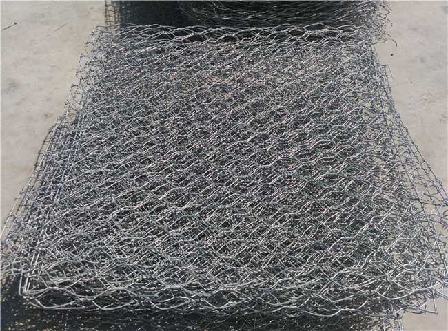 石籠網(wǎng)是使用機器將金屬線材單向搓捻兩周編織的六角形網(wǎng)(六角網(wǎng)) 制成的網(wǎng)箱,厚度在0.15-0.5m(含0.5m),又稱石籠和護墊,石籠網(wǎng)墊由隔板分成若干單元格,為了加強石籠網(wǎng)墊結(jié)構(gòu)的強度,所有的面板邊端均采用直徑更大的鋼絲。